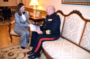 La alcaldesa, Patricia Cavada, ha recibido en su despacho al nuevo comandante general de la Infantería de Marina (Comgeim), el general de división Antonio Planells, Palau, que tomó posesión de este cargo el pasado 16 de enero en una ceremonia militar celebrada en el Patio de Cristales del antiguo Palacio de Capitanía General de San Fernando.