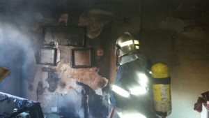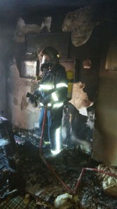 Bomberos, con equipos de respiración autónoma y cámara térmica, accede a la vivienda y localiza el salón en llamas. Se procede a su control y extinción. Ha sido necesario utilizar 500 litros de agua para completar la extinción. El fuego ha afectado al mobiliario y enseres del salón y los materiales en combustión han generado una alta carga de temperatura y de humo que ha hecho estallar cristaleras de la estancia y afectar a revestimientos de escayola de techos y paredes. El resto de la casa por humo y temperatura. Una vez extinguido, Bomberos procede a evacuación forzada de humo con turboventilador, tanto de la vivienda como de las zonas comunes (escaleras y hueco de ascensor). También se localiza a varios perros, en un piso superior, que se encontraban bien. 5 Bomberos y una actuación que se ha prolongado durante una hora