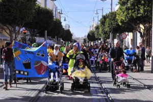 Para facilitar la participación de los escolares y el profesorado que les acompaña, y como novedad este año, el pasacalles ha pasado a celebrarse en tres zonas de la ciudad en las que los alumnos y alumnas se han concentrado para desfilar con sus disfraces y cantar las letras carnavaleras que tenían preparadas para la ocasión.