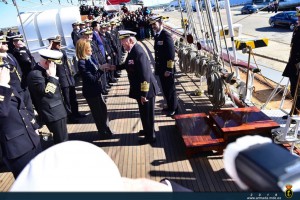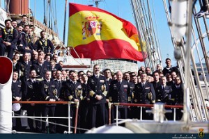 Por último se llevó a cabo la tradicional “foto de familia” de SS.MM. con los antiguos Comandantes y con la dotación del “Juan Sebastián de Elcano”, seguida del agradecimiento del Comandante del Buque Escuela por la visita recibida.