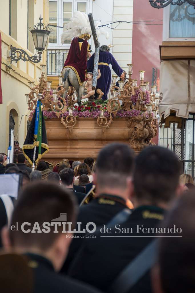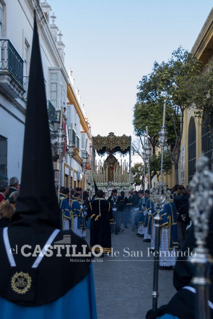 Desde la Pastora, la cofradía de la Misericordia salía a la calle con un buen número de hermanos y mecido por sus cuadrillas de hermanos. Contaba con la novedad de la banda de cornetas Zoilo Ruiz Mateos, de Rota, que acompañaba el paso del titular. Era una tarde noche de bandas de cornetas.