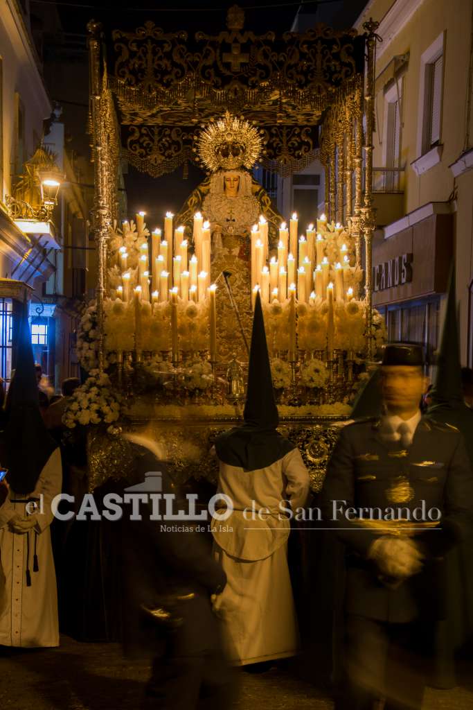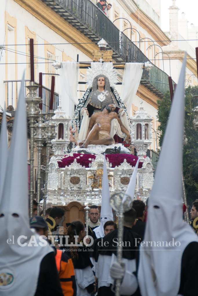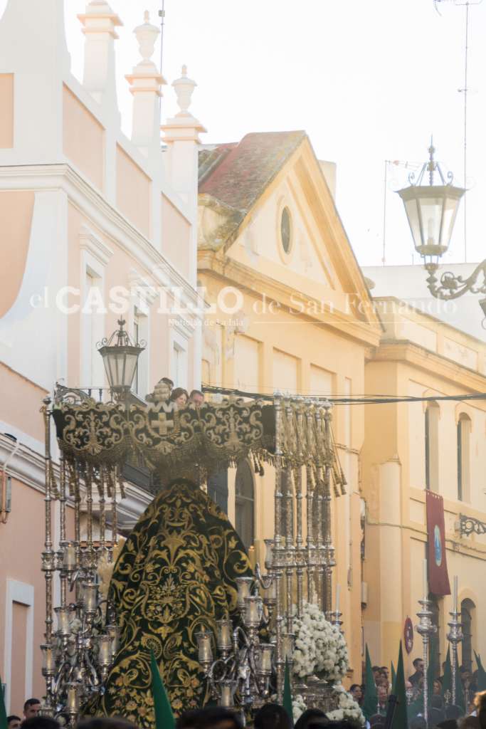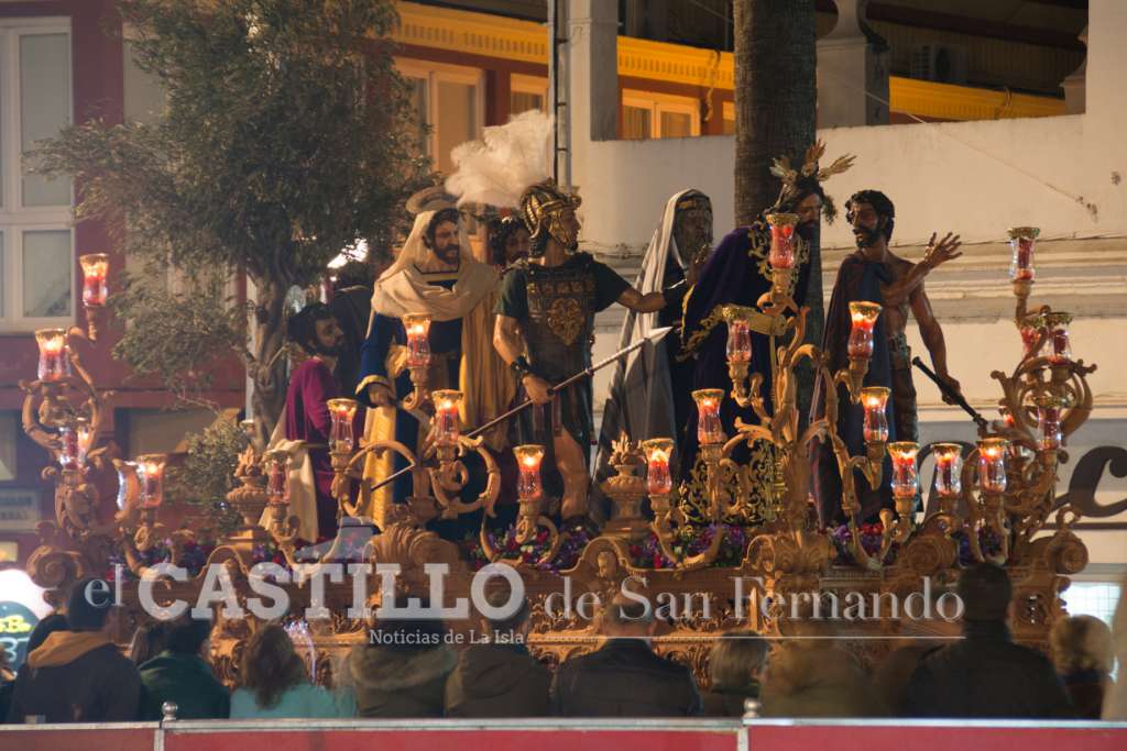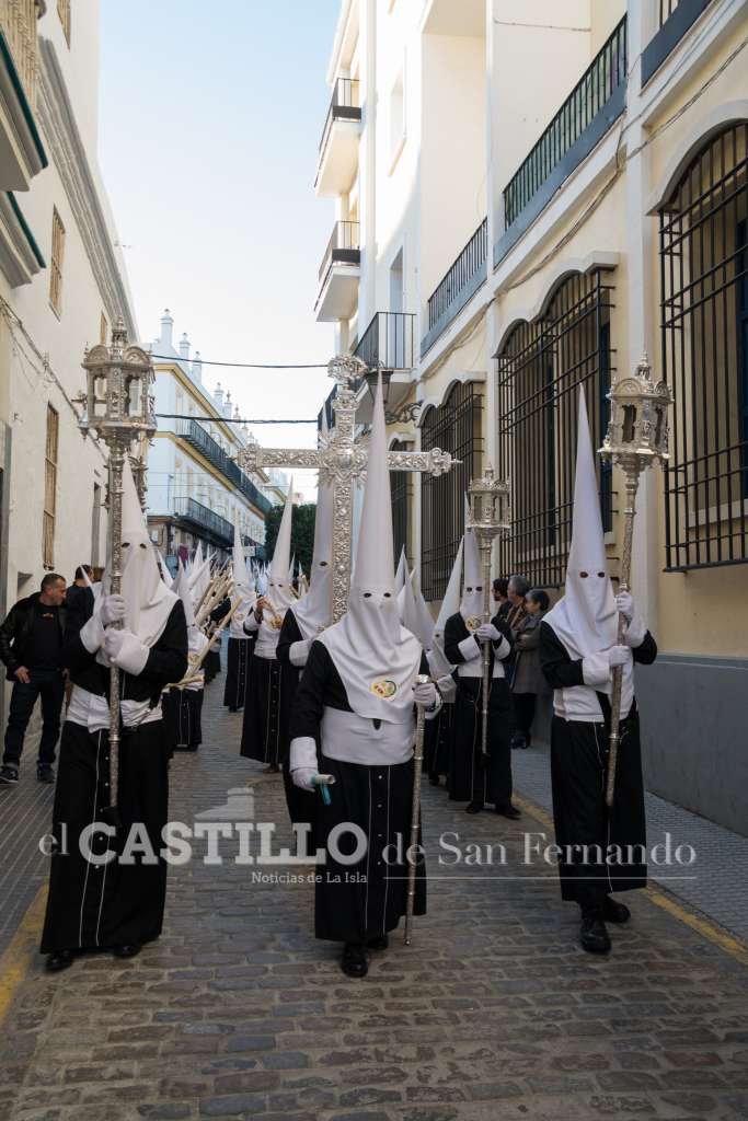 El tiempo sigue contribuyendo a la grandeza de la Semana Santa de San Fernando. El sol presidió la salida de la cofradía del barrio del Parque. La Hermandad del Prendimiento lo hacía a las 17:30 horas, con los aledaños de la Iglesia de San José Artesano rebosantes de público.