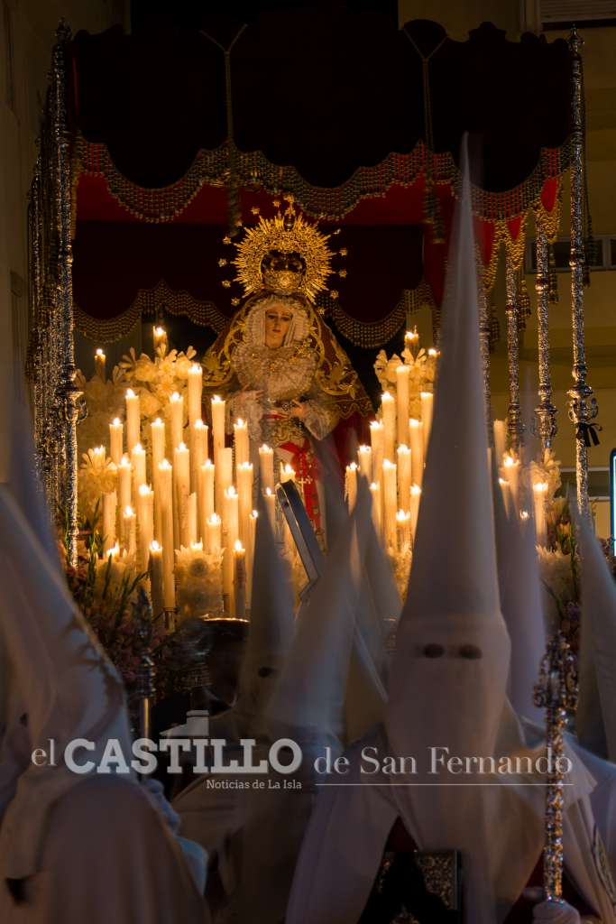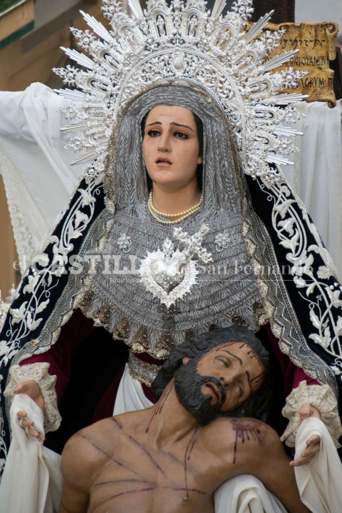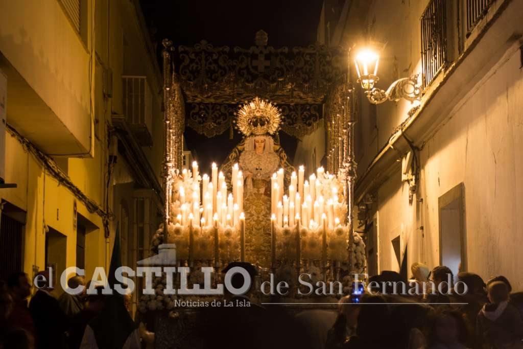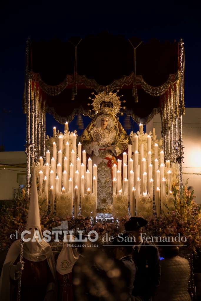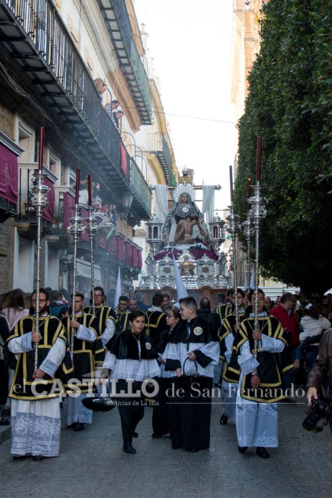 El tiempo sigue contribuyendo a la grandeza de la Semana Santa de San Fernando. El sol presidió la salida de la cofradía del barrio del Parque. La Hermandad del Prendimiento lo hacía a las 17:30 horas, con los aledaños de la Iglesia de San José Artesano rebosantes de público.