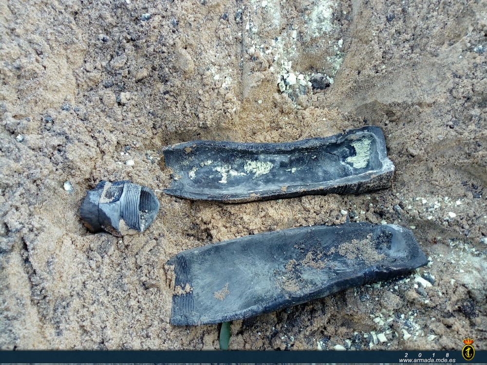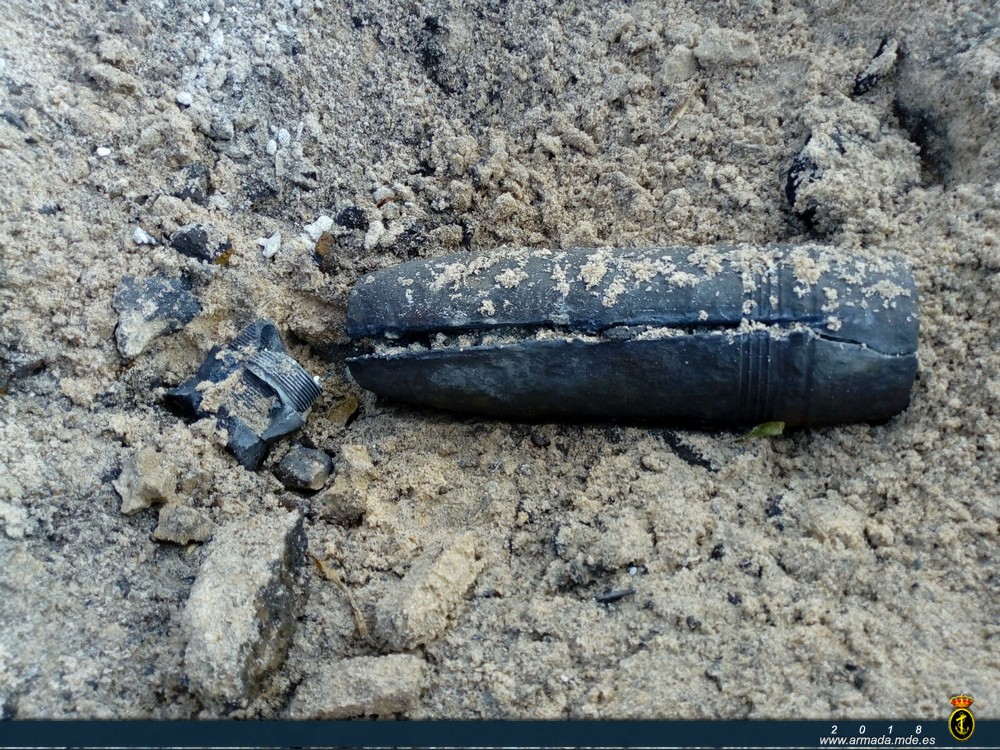 Seguidamente, el equipo de desactivado de explosivos comprobó que no quedaban en la zona restos de explosivo ni del artefacto, con el fin de evitar cualquier tipo de impacto medioambiental. Con los restos se constató que se trataba de un proyectil de artillería, alto explosivo, de 105mm.