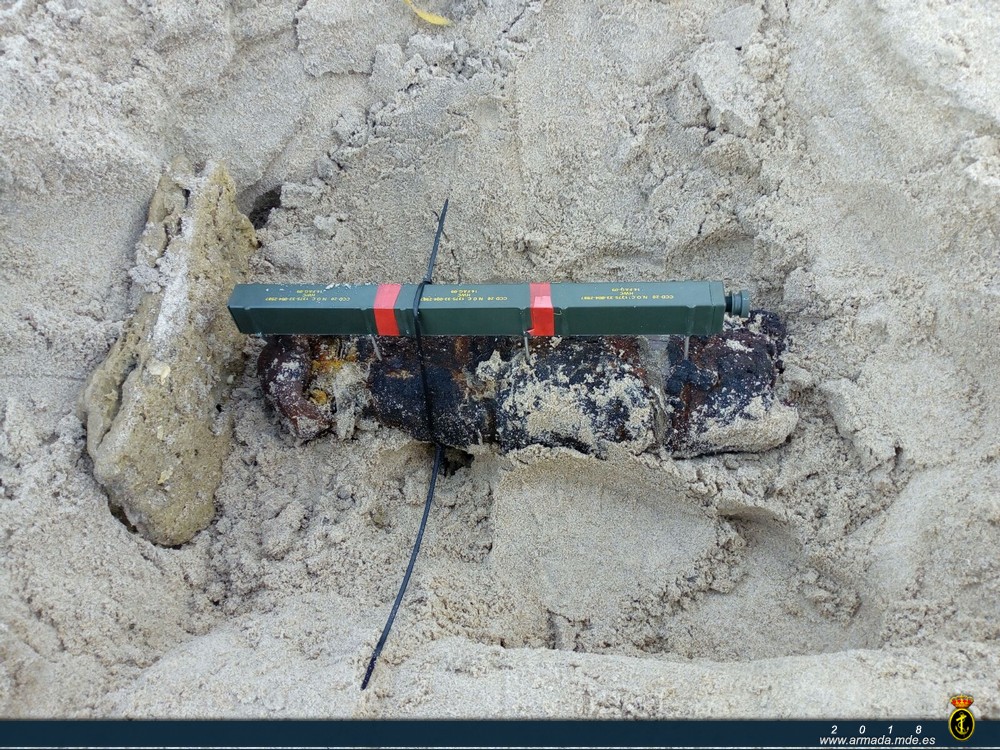 Tras recibir el aviso del hallazgo del artefacto, el Cuartel General de la Fuerza de Acción Marítima, a través del Centro de Operaciones y Vigilancia de Acción Marítima (COVAM), destacó un equipo de buceadores, especialistas en desactivado de explosivos, encargado de identificar y neutralizar el proyectil.