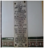 "D.E.P. ¡Caídos por Dios y por España!. Rvdos Hermanos de las EE.CC que pertenecieron a este colegio de San Juan Bta de La Salle: Hº Ovidio Bertrán, Director. Hº Crisólogo, Director. Hº Floriano Féliz. Hº Josafat Roque. Antiguos alumnos de esta Asociación: Francisco Pontones Cuartero. Manuel Panadero Portillo. Manuel Fernández Sánchez. Pedro Real Alvarez. Juan Baone Mora. ¡Presentes!. ¡Misericordiosísimo Jesús!. Dadles el descanso eterno.