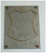 Como los lectores saben, de la Capilla del Colegio La Salle, en la C/Real, sale el primer domingo de Semana Santa, la popular Hermandad de la Borriquita. Aquí les muestro una placa conmemorativa de su fundación, en 1963, situada también, como el resto de las de esta entrada, en el interior del colegio: