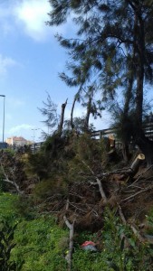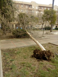 En cuanto al servicio de parques y jardines se refiere se ha procedido a la retirada de pequeñas y medianas ramas en diversas barriadas y parques de la ciudad: Paseo General Lobo, Parque Almirante Laulhé, Alameda Moreno de Guerra, Plaza del Carmen, Rotonda de la Comunicación, Plaza de las Esculturas, Parque del Barrero, Hornos Púnicos, Plaza de la Ladrillera, Plaza de Hispanoamérica, Parque de las Huertas, Cale Periodista Jiménez Guerra, Plaza de los Barcos y Plaza Nao Victoria.