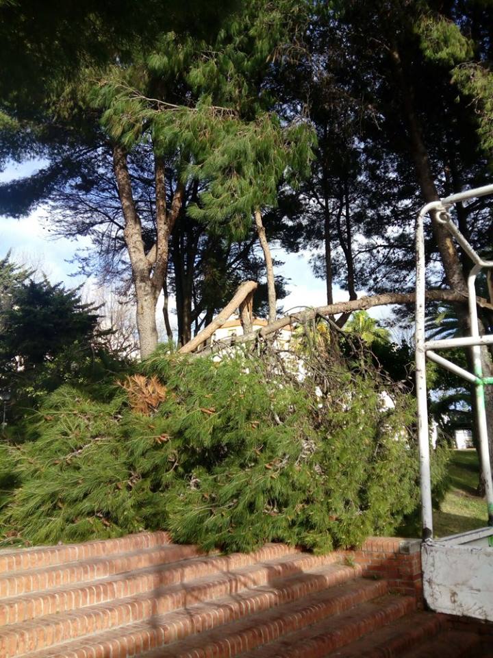 En cuanto al servicio de parques y jardines se refiere se ha procedido a la retirada de pequeñas y medianas ramas en diversas barriadas y parques de la ciudad: Paseo General Lobo, Parque Almirante Laulhé, Alameda Moreno de Guerra, Plaza del Carmen, Rotonda de la Comunicación, Plaza de las Esculturas, Parque del Barrero, Hornos Púnicos, Plaza de la Ladrillera, Plaza de Hispanoamérica, Parque de las Huertas, Cale Periodista Jiménez Guerra, Plaza de los Barcos y Plaza Nao Victoria.