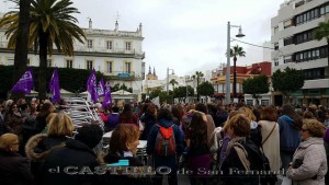 La concentración ciudadana ha reunido a representantes de los grupos políticos municipales, sindicales y de colectivos relacionados con el movimiento participativo, vecinal, asociaciones de mujeres, de la cultura y la sociedad isleña en general. Enmarcada dentro de la programación organizada por el Ayuntamiento de San Fernando a lo largo de este mes con motivo del 8-M, se trata de una medida de concienciación para la defensa de la igualdad y visualización a la hora de trasladar a la sociedad la necesidad de luchar, con todas las herramientas al alcance, por la consecución de los mismos derechos para la mujer con respecto al hombre, haciéndolo además en esta ocasión con una reivindicación en el ámbito laboral “donde se puede afirmar tajantemente que la igualdad no existe debido a la brecha salarial”, según aseguró la alcaldesa Patricia Cavada en su intervención.
