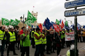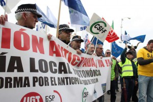 CSIF, como miembro de la plataforma convocante, participa en la protesta de esta mañana ante la Subdelegación del Gobierno, donde policías locales de San Fernando acudieron se sumaron la concentración.