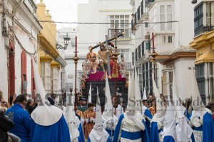 Columna era la tercera de las hermandades en hacer su salida con una Plaza de la Iglesia llena. Los pasos iban exornados a base de rosas rojas en el misterio y rosas en su color para el paso de palio. Nuevamente, el acompañamiento musical de la hermandad fue la agrupación musical Esencia Tres Caídas y la banda Maestro Enrique Montero, de Chiclana.