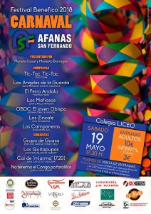 El 'III Festival Benéfico 2018 Carnaval' organizado por Afanas San Fernando llega de nuevo a la ciudad el próximo 19 de mayo, pero este año el patio del Colegio Liceo será el que acogerá esta cita tan esperada, y no el Colegio La Salle como venía siendo habitual, cuyo cartel no ha dejado indiferente a los amantes del carnaval.