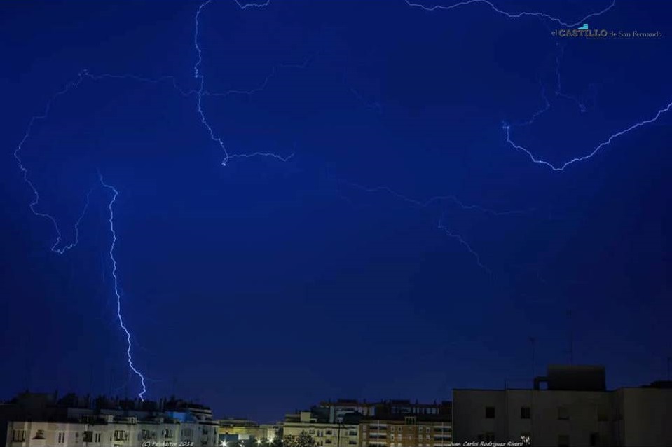 El cielo de San Fernando, desde las 23:00 hasta las 02:40 horas del 22 y 23 de abril, tuvo un ir y venir de relámpagos, rayos y truenos provocando que la ciudad en muchas ocasiones pareciese que se encontrara a plena luz del día.