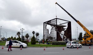 Desde las 13:00 horas se ha procedido a la retirada de la barca que forma parte de la Fuente de la Comunicación, a la entrada de la ciudad, por motivos de seguridad.