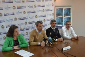 El primer teniente de Alcaldía, Fran Romero; la delegada municipal de Deportes, Maite Lebrero; el jefe de instalaciones deportivas de la Armada en la Bahía de Cádiz, el coronel de Infantería de Marina Antonio Rodríguez Alcalá, y el presidente del Club Natación San Fernando, Clemente Ruíz, han tomado parte este mediodía en la presentación del cartel del XXIII Trofeo de Natación Ciudad de San Fernando, que se disputará este sábado 5 de mayo en la Piscina de Invierno de San Rafael de la Junta de Educación Física y Deportes de la Armada, en doble sesión de mañana y tarde.