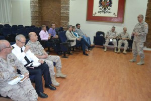 El primer teniente de alcaldesa y delegado de Promoción de la Ciudad, Fran Romero; el diputado provincial de Deportes, Jaime Armario; la delegada municipal de Deportes, Maite Lebrero, y el general del Tercio de la Armada, el general de brigada Rafael Roldán Tudela, han mantenido esta mañana en el Cuartel de San Carlos-Batallones de Marina un primer encuentro de trabajo de cara a la preparación de la Fan Pin Race 2018.