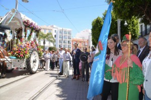 Tras la eucaristía, se han dirigido a la Iglesia Mayor Parroquial, donde han visitado a San José, Patrón de la Ciudad, y al Regidor Perpetuo, Nuestro Padre Jesús Nazareno. Camino a la Iglesia del Carmen, en los accesos al Centro de Congresos, ha sido el lugar donde la alcaldesa hizo entrega de la bandera, y los peregrinos y peregrinas se han despedido de la Patrona, la Santísima Virgen del Carmen, antes de iniciar el camino, previsto a partir de las 17:30 horas, hacia Sanlúcar y la playa de las Piletas, primera parada donde pernoctarán.
