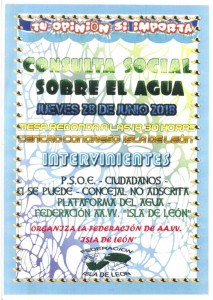 La Junta Directiva de la Federación AAVV Isla de León contará con la participación de diferentes Partidos Políticos; PSOE, Ciudadanos, Sí se puede, Concejal no Adscrita y varios integrantes de la Plataforma por el Agua, así como miembros de la propia Federación de vecinos.
