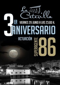 La Ceterilla del Zaporito está de celebración, este viernes 29 de junio tendrá lugar su fiesta del tercer aniversario y para ello contará de nuevo con la actuación de ‘SúperAgente 86’.