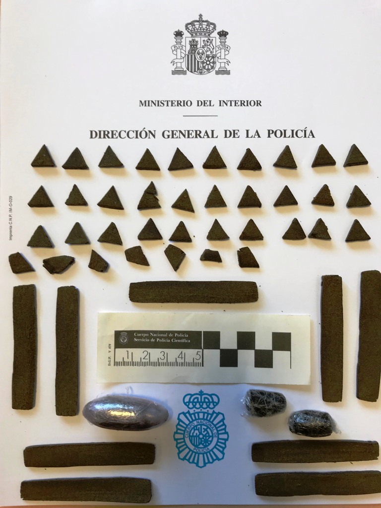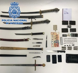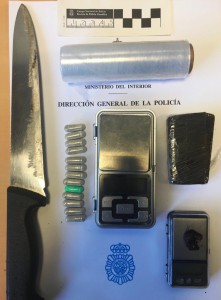 Se han intervenido 50 dosis de hachÃs dispuesta para su venta, asà como más de 500 gramos de hachÃs, balanzas de precisión, numerosas armas blancas entre ellas Katanas y navajas automáticas, asà como otros elementos incrimatorios.