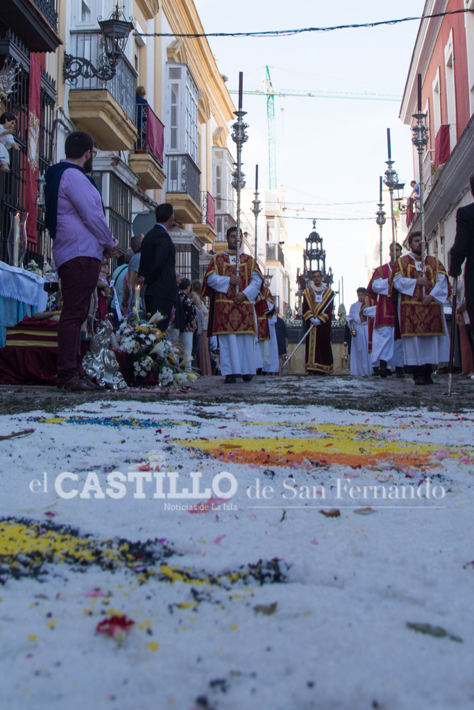Una año más El Arciprestazgo y el Ayuntamiento han querido solemnizar la celebración de esta festividad y rodearla de una serie de actos que preludiaban a la llegada del pasado domingo 3 de junio con la celebración eucarística, procesión del Corpus Christi y salida de la custodia con el Santísimo, la Patrona de San Fernando y de la Armada, la Santísima Virgen del Carmen, y el Patrón de la ciudad, San José