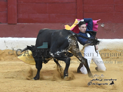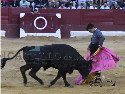 Alejandro Vidal con apenas opciones con el rajado añojo del Conde de la Maza, si bien consiguió robar algún que otro muletazo del imposible animal con disposición y ganas. Pinchazo y estocada caída. Oreja.