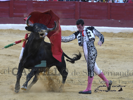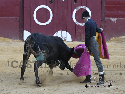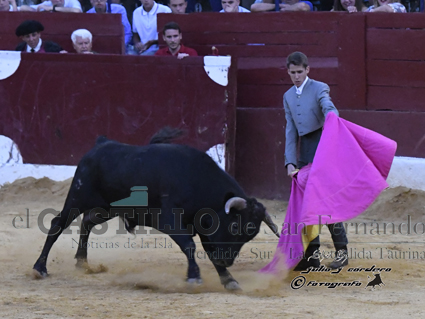 Gran actuación de Jesús Rivero ante un eral serio y encastado del Conde de la Maza al que recibió con buenos lances a la verónica rematados con dos buenas medias. Con la muleta importante faena la del novillero isleño con tandas de muletazos de muy buen trazo tanto con la ayuda montada  como al natural muy jaleadas por el publico. Tuvo Rivero la capacidad de mantener un gran nivel durante toda su actuación con la muleta. Faena vibrante de principio a fin con buena colocación y ajuste, de las más importantes de su corta carrera como novillero  emborronada por el mal uso de la espada. Estocada tendida, dos pinchazos y estocada atravesada. Oreja.
