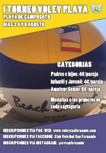 Las inscripciones para este 'I Torneo de Vóley Playa Camposoto' pueden completarse a través del siguiente enlace. También es posible hacerlo mediante los perfiles del Club Voleibol San Fernando en Facebook e Instagram.