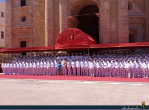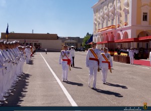 Tras su llegada a la Escuela y recibir los honores de Ordenanza, SM el Rey pasó revista al Batallón de Alumnos y, tras saludar a las autoridades y el público presente, presidió el acto.