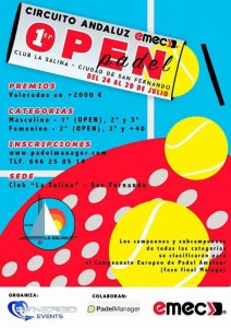El 'I Open de Pádel Club La Salina Ciudad de San Fernando' tendrá lugar del 24 al 29 de julio y forma parte del Circuito Andaluz Amateur y es clasificatorio para la European Cup of Pádel Clubs, cuya fase final se celebrará en Málaga.