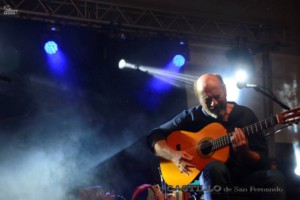 A las 22:15 horas ante un público sentado en las gradas del parque accedió al escenario el portuense Javier Ruibal acompañado del guitarrista José Recacha. Durante una hora y cuarto deleitaron a los presentes que al empezar su primer tema quisieron arroparle acercándose los más posible a ellos.