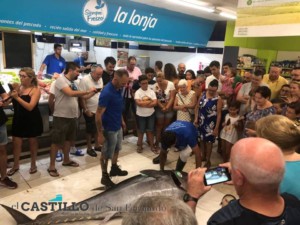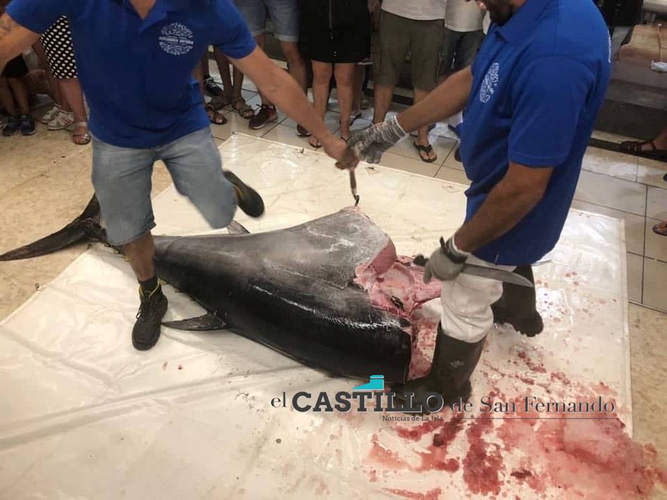 Hace una hora ha tenido lugar en el día de hoy, en la pescadería del Supermercados Mas de Hornos Púnicos, un ronqueo de ‘Atún Rojo del Atlántico’ de 183 kilos a cargo de la empresa isleña de ‘Hermanos Caña’.