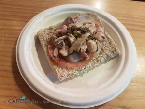‘Marisquería y Cervecería 3×5’. Tosta de secreto ibérico. 5J con jamón ibérico