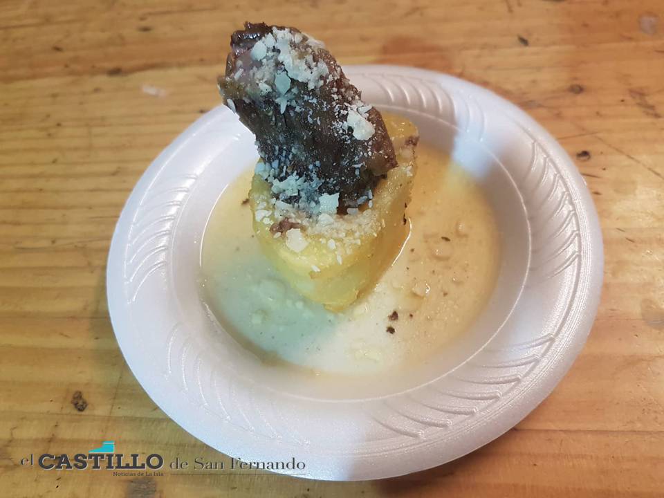 ‘Ñam Ñam’. Morcillo glaseado en patata confitada y polvo de almendra