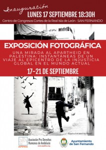 El Centro de Congresos Real Isla de León acogerá mañana lunes 17 de septiembre a las 18:30 horas la inauguración de la exposición de fotos ‘Una mirada al apartheid en Palestina’ la cual podrá visitarse hasta el viernes 21.