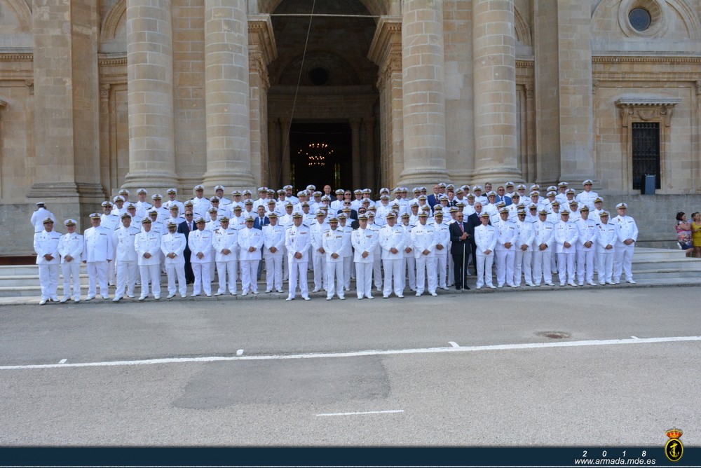 Los actos han dado comienzo con la celebración de una misa en el Panteón de Marinos Ilustres. A continuación, los miembros de la promoción asistentes renovaron su juramento a la Bandera en presencia de sus familiares y amigos invitados, así como del cuadro de profesores y mandos de la Escuela.