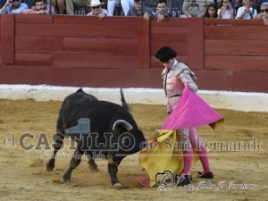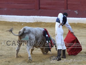 Alberto Muñoz se encontró con un añojo con trapío de eral que no hizo honor a su pelo jabonero y que fue el garbanzo negro del festejo. Con peligro, reponiendo y quedándose corto por ambos pitones, este novillo lidiado en tercer lugar mostró la dureza de esta profesión con la que sueñan estos jóvenes. Aún así, Alberto Muñoz no se achicó en ningún momento y sin apenas poder mantenerse en pie tras ser volteado en numerosas ocasiones, siguió mostrando sus ganas de ser torero en todo momento. Faena vibrante peleada cuerpo a cuerpo con este novillo a la que Muñoz no pudo poner fin por el mal uso de la espada. Vuelta al ruedo muy ovacionada.