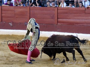 Jesús Rivero mostró muy buena actitud ante el eral colorado que hizo primero, faena condicionada por el viento de levante que molestó mucho al principio del festejo. Rivero esbozó buenos muletazos con la zurda con la ayuda montada, pero apenas pudo interpretar el buen toreo al natural que ha tenido en anteriores actuaciones. Faena de más a menos emborronada por el mal uso de la espada. Ovación.