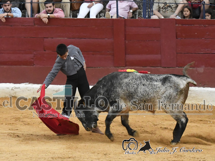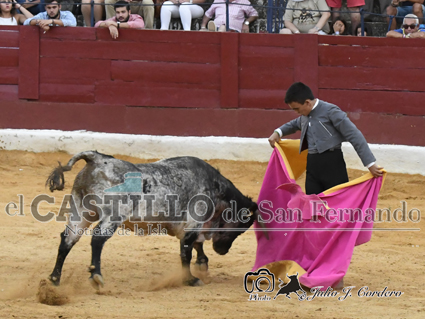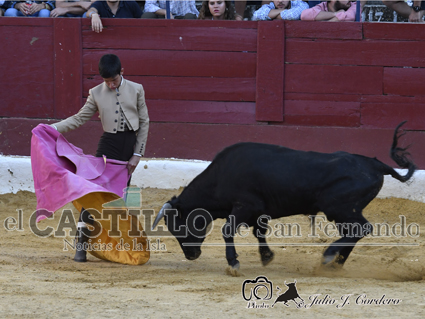 Con algo más de media plaza se han lidiado dos erales y tres añojos de la ganadería 'El Rodeo", bien presentados que dieron muy buen juego a excepción del jabonero que hizo tercero mostrando mucho peligro y complicado, para los alumnos de la Asociación Cultural Rafael Ortega de San Fernando: