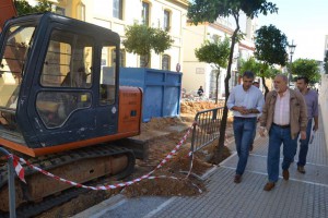 El primer teniente de alcaldesa y delegado general del Área Municipal de Desarrollo Sostenible, Fran Romero, ha visitado, en compañía de miembros de la junta directiva de la Asociación de Comerciantes de San Fernando (ACOSAFE), las obras que el Área Municipal ejecuta para renovar la red de saneamiento en el tramo de la Calle Colón comprendido entre las calles Rosario y Santo Domingo y en el tramo de la Calle Escaño comprendido entre las calles Santo Domingo y Arias de Miranda.