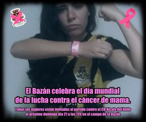 El Grupo Empresa Bazán Club de Fútbol continúa con su propuesta social preocupado por los problemas y cuestiones que atañen a la ciudadanÃa y, para ello, ha preparado un pequeño guiño a la lucha contra el cáncer de mama que se ha celebrado hoy viernes dÃa 19 de octubre.