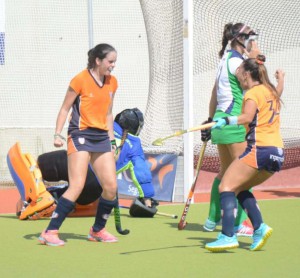 En una de las embestidas de las chicas de Juanma Migueles conseguÃan materializar un penalti córner por medio de Elena Hurtado.