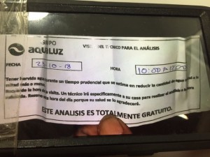 En dicha campaña se ofrece la visita de un técnico para realizar, según se desprende del documento, un análisis al agua del grifo previa ebullición (agua hervida) de la misma, y cuyo fin último es la venta de “Sistemas de Tratamiento de Agua Potable de Descalcificación y Ósmosis Inversa” en domicilios de la ciudad de San Fernando. En dicha campaña publicitaria se recomienda el uso de aparatos adicionales para mejorar la calidad del agua del grifo.