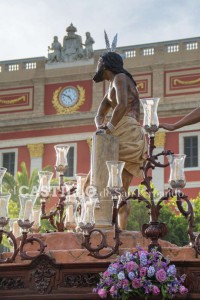 El cortejo fue abierto por la antigua Cruz de Guía de la Hermandad, la cual fue realizada en 1941, seguida por un gran número de Hermanos que no dudaron en acompañar a su Titular. El paso de Cristo, portado por los Hermanos cargadores de la Hermandad, fue acompañado por uno de los estrenos de la tarde de ayer, el cuerpo de ciriales, formado por seis ciriales y pertiguero; otros de los estrenos para este días fueron las nuevas potencias, y cordón de hilo, realizadas en plata de ley e hilo de plata respectivamente para Nuestro Padre Jesús Atado y Flagelado en la Columna. El conjunto escultórico también tuvo su estreno, ya que el mismo es ahora cerrado por un sillón Jamuga con atributos de la pasión. Cerrando el cortejo, el magistral acompañamiento musical de la Banda de Cornetas y Tambores “Nuestra Señora de la Victoria” -Las Cigarreras-, que no defraudó a nadie.