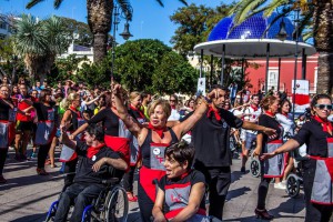 Una Alameda a rebosar, con las mujeres de La Fragua, personas usuarias de UPACE San Fernando, familiares, profesionales y la colaboración del voluntariado, tanto de UPACE como alumnado del centro Sigler y del I.E.S. Las Salinas, que han bailado Alegría del Vacío”, con la voz de Jesús Castilla y la letra de Juan Antonio Iglesias.