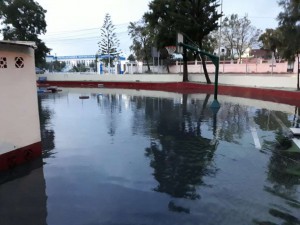 El candidato explica que, por segunda vez en lo que va de curso, el servicio municipal de saneamiento tendrá que actuar en este colegio a causa de las masas de agua provocadas por las precipitaciones.
