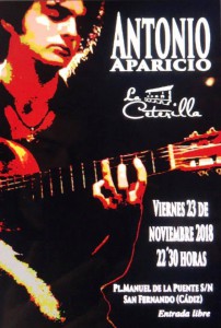 Antonio Aparicio deleitará a todos los presentes en el restaurante isleño ubicado en la Plaza Manuel de la Puente s/n, acompañado de su guitarra interpretando versiones de diferentes artistas del panorama musical español; Antonio Flores, Tontxu, Manuel Carrasco, El Kanka, entre otros. De igual manera presentará varios temas propios.