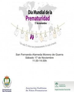 La ciudad de San Fernando acogerá mañana sábado 17 de noviembre por primera vez la jornada de concienciación del Día Mundial de la Prematuridad en la Alameda Moreno de Guerra de San Fernando de 11:00 a 14:00 horas.