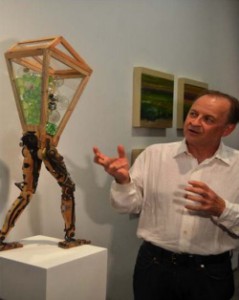 “Elementos de máquinas de escribir, maderas diversas seleccionadas y reutilizadas, piezas mecánicas, tornillos son los ‘objetos encontrados’ que sirven de cebo a nuestro trabajo, proponiendo nuevos retos de reutilización para reciclar la mente, devolviendo vida a elementos desechados, perdidos o extraviados”.